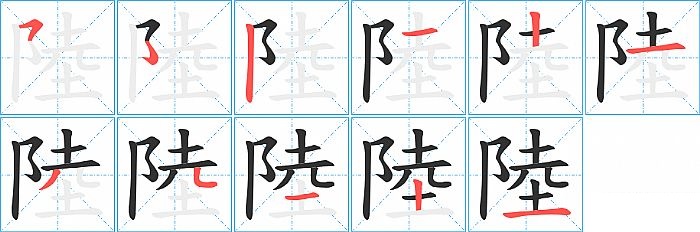 陸是左右结构,陸的部首是“阝”,部外笔画8画,总笔画10画,陸的笔画顺序是“横折折折钩/横撇弯钩、竖、横、竖、横、撇、点、横、竖、横”。看看“陸”字什么意思 >>