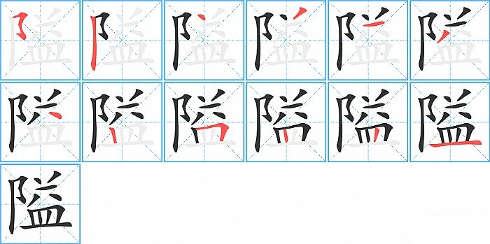 隘是左右结构,隘的部首是“阝”,部外笔画10画,总笔画12画,隘的笔画顺序是“横折折折钩/横撇弯钩、竖、点、撇、横、撇、点、竖、横折、竖、竖、横”。看看“隘”字什么意思 >>