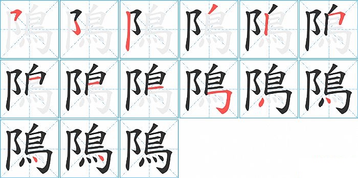 隝是左右结构,隝的部首是“阝”,部外笔画11画,总笔画13画,隝的笔画顺序是“横折折折钩/横撇弯钩、竖、撇、竖、横折、横、横、横、横折钩、点、点、点、点”。看看“隝”字什么意思 >>