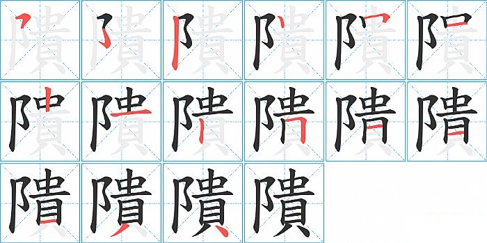 隤是左右结构,隤的部首是“阝”,部外笔画12画,总笔画14画,隤的笔画顺序是“横折折折钩/横撇弯钩、竖、竖、横折、横、竖、横、竖、横折、横、横、横、撇、点”。看看“隤”字什么意思 >>