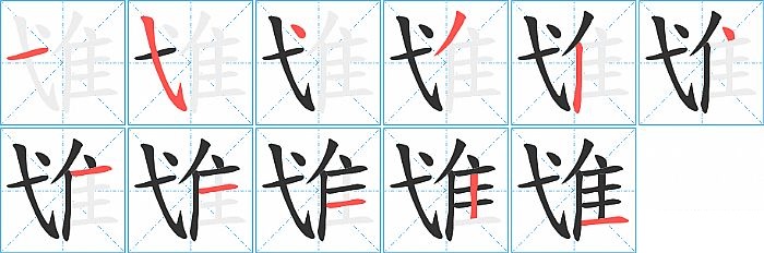 隿是左右结构,隿的部首是“隹”,部外笔画3画,总笔画11画,隿的笔画顺序是“横、斜钩、点、撇、竖、点、横、横、横、竖、横”。看看“隿”字什么意思 >>