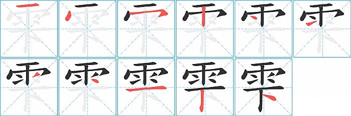 雫是上下结构,雫的部首是“雨”,部外笔画3画,总笔画11画,雫的笔画顺序是“横、点、横撇/横钩、竖、点、点、点、点、横、竖、点”。看看“雫”字什么意思 >>