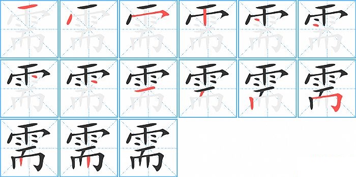 需是上下结构,需的部首是“雨”,部外笔画6画,总笔画14画,需的笔画顺序是“横、点、横撇/横钩、竖、点、点、点、点、横、撇、竖、横折钩、竖、竖”。看看“需”字什么意思 >>