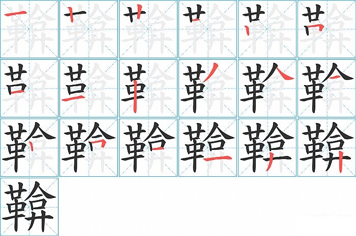 鞥是左右结构,鞥的部首是“革”,部外笔画9画,总笔画18画,鞥的笔画顺序是“横、竖、竖、横、竖、横折、横、横、竖、撇、捺、横、竖、横折、横、横、撇、竖”。看看“鞥”字什么意思 >>