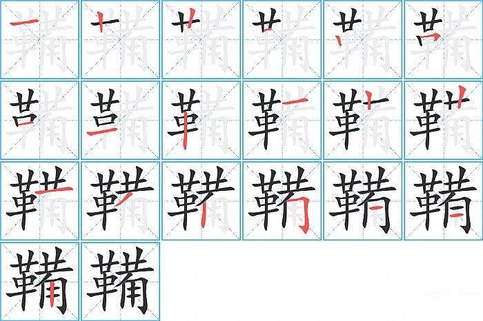 鞴是左右结构,鞴的部首是“革”,部外笔画10画,总笔画19画,鞴的笔画顺序是“横、竖、竖、横、竖、横折、横、横、竖、横、竖、竖、横、撇、竖、横折钩、横、横、竖”。看看“鞴”字什么意思 >>