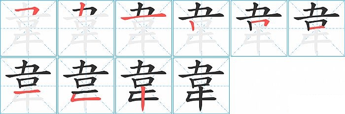 《韋》字的笔顺分步演示图(一笔一画写汉字)