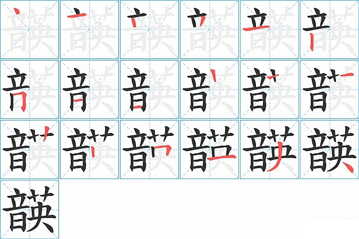 韺是左右结构,韺的部首是“音”,部外笔画8画,总笔画17画,韺的笔画顺序是“点、横、点、撇、横、竖、横折、横、横、横、竖、竖、竖、横折、横、撇、捺”。看看“韺”字什么意思 >>