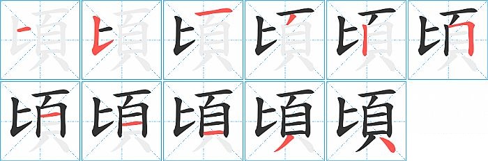 頃是左右结构,頃的部首是“頁”,部外笔画2画,总笔画11画,頃的笔画顺序是“横、竖提、横、撇、竖、横折、横、横、横、撇、点”。看看“頃”字什么意思 >>
