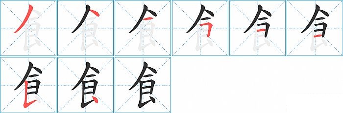 《飠》字的笔顺分步演示图(一笔一画写汉字)