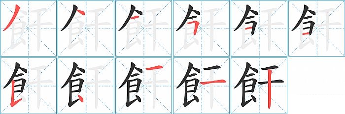 飦是左右结构,飦的部首是“飠”,部外笔画3画,总笔画11画,飦的笔画顺序是“撇、点、点、横折、横、横、竖提、点、横、横、竖”。看看“飦”字什么意思 >>