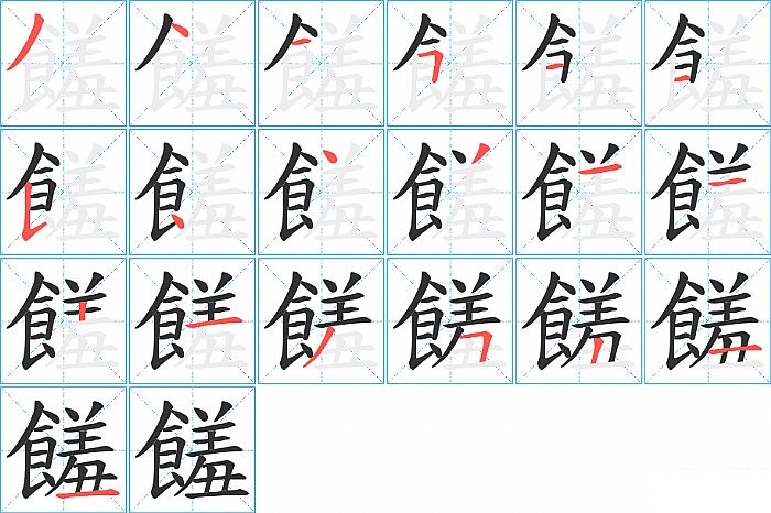 饈是左右结构,饈的部首是“飠”,部外笔画10画,总笔画18画,饈的笔画顺序是“撇、点、点、横折、横、横、竖提、点、点、撇、横、横、横、撇、横折、竖、横、横”。看看“饈”字什么意思 >>