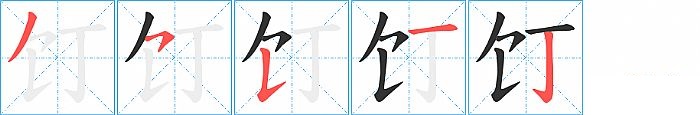 《饤》字的笔顺分步演示图(一笔一画写汉字)