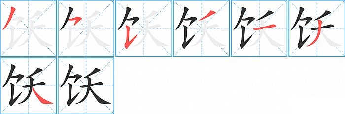 《饫》字的笔顺分步演示图(一笔一画写汉字)