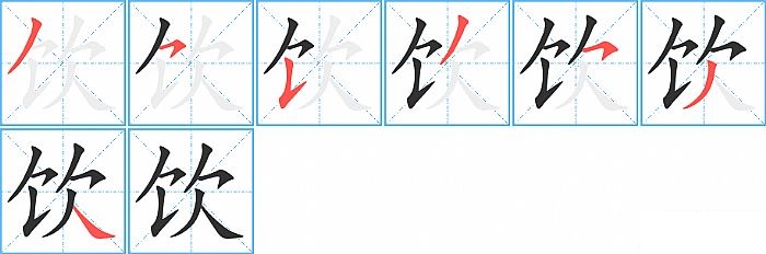 《饮》字的笔顺分步演示图(一笔一画写汉字)