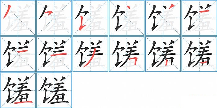 馐是左右结构,馐的部首是“饣”,部外笔画10画,总笔画13画,馐的笔画顺序是“撇、横撇/横钩、竖提、点、撇、横、横、横、撇、横折、竖、横、横”。看看“馐”字什么意思 >>
