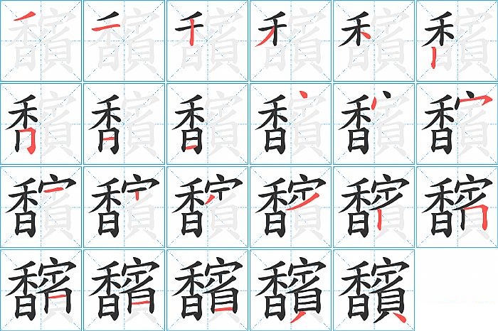 馪是左右结构,馪的部首是“香”,部外笔画14画,总笔画23画,馪的笔画顺序是“撇、横、竖、撇、点、竖、横折、横、横、点、点、横撇/横钩、横、竖、撇、撇、竖、横折、横、横、横、撇、点”。看看“馪”字什么意思 >>