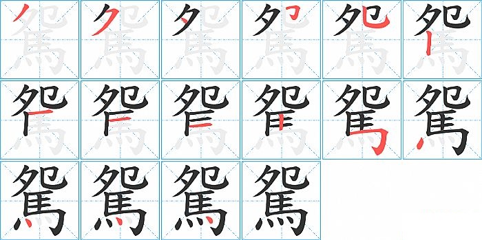 駌是上下结构,駌的部首是“馬”,部外笔画5画,总笔画15画,駌的笔画顺序是“撇、横撇/横钩、点、横折钩、竖弯钩、横、竖、横、横、竖、横折钩、点、点、点、点”。看看“駌”字什么意思 >>