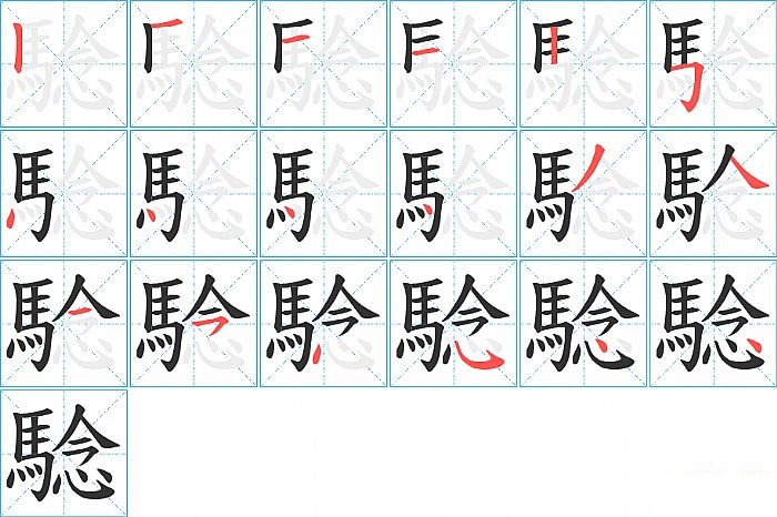 騐是左右结构,騐的部首是“馬”,部外笔画8画,总笔画18画,騐的笔画顺序是“横、竖、横、横、竖、横折钩、点、点、点、点、撇、捺、点、横撇/横钩、点、斜钩、点、点”。看看“騐”字什么意思 >>