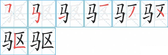 《驱》字的笔顺分步演示图(一笔一画写汉字)