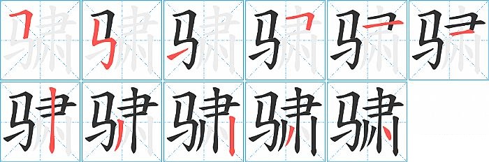 骕是左右结构,骕的部首是“马”,部外笔画8画,总笔画11画,骕的笔画顺序是“横折、竖折折钩、提、横折、横、横、竖、撇、竖、撇、点”。看看“骕”字什么意思 >>