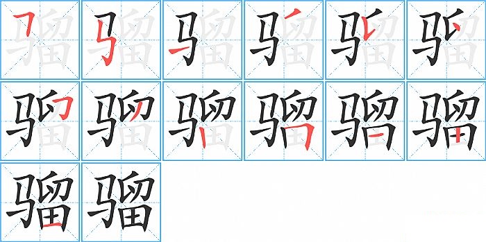 骝是左右结构,骝的部首是“马”,部外笔画10画,总笔画13画,骝的笔画顺序是“横折、竖折折钩、提、撇、竖提、点、横折钩、撇、竖、横折、横、竖、横”。看看“骝”字什么意思 >>