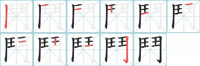 《鬥》字的笔顺分步演示图(一笔一画写汉字)