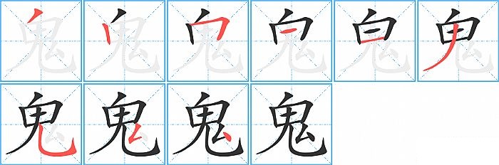 《鬼》字的笔顺分步演示图(一笔一画写汉字)