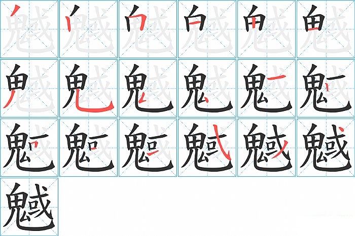 魊是左下包围结构,魊的部首是“鬼”,部外笔画8画,总笔画17画,魊的笔画顺序是“撇、竖、横折、横、横、撇、竖弯钩、撇折、点、横、竖、横折、横、提、斜钩、撇、点”。看看“魊”字什么意思 >>