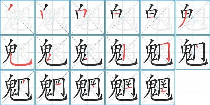 魍是半包围结构,魍的部首是“鬼”,部外笔画8画,总笔画17画,魍的笔画顺序是“撇、竖、横折、横、横、撇、竖弯钩、撇折、点、竖、横折钩、点、撇、横、点、横、竖折/竖弯”。看看“魍”字什么意思 >>