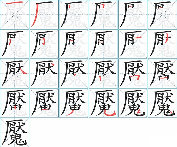 魘是左上包围结构,魘的部首是“鬼”,部外笔画14画,总笔画23画,魘的笔画顺序是“横、撇、竖、横折、横、横、竖、横折钩、横、横、横、撇、捺、点、撇、竖、横折、横、横、撇、竖弯钩、撇折、点”。看看“魘”字什么意思 >>