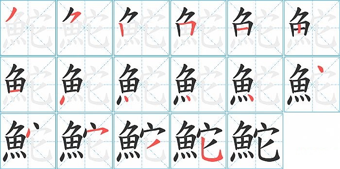 鮀是左右结构,鮀的部首是“魚”,部外笔画5画,总笔画16画,鮀的笔画顺序是“撇、横撇/横钩、竖、横折、横、竖、横、点、点、点、点、点、点、横撇/横钩、撇、竖弯钩”。看看“鮀”字什么意思 >>