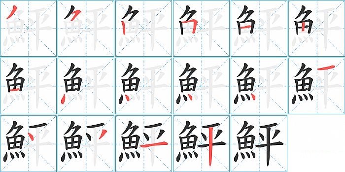 鮃是左右结构,鮃的部首是“魚”,部外笔画5画,总笔画16画,鮃的笔画顺序是“撇、横撇/横钩、竖、横折、横、竖、横、点、点、点、点、横、点、撇、横、竖”。看看“鮃”字什么意思 >>