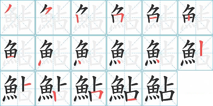 鮎是左右结构,鮎的部首是“魚”,部外笔画5画,总笔画16画,鮎的笔画顺序是“撇、横撇/横钩、竖、横折、横、竖、横、点、点、点、点、竖、横、竖、横折、横”。看看“鮎”字什么意思 >>
