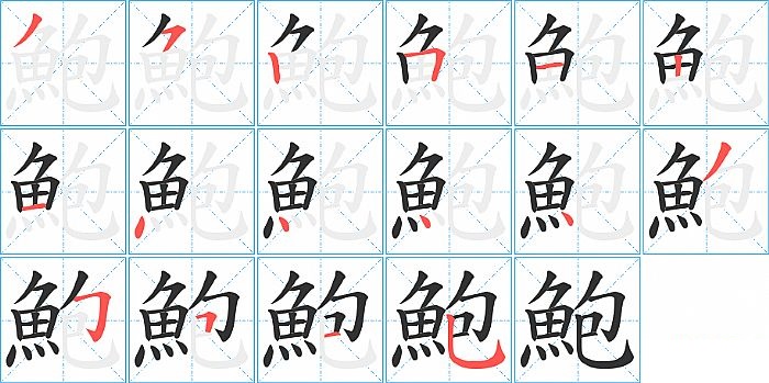 鮑是左右结构,鮑的部首是“魚”,部外笔画5画,总笔画16画,鮑的笔画顺序是“撇、横撇/横钩、竖、横折、横、竖、横、点、点、点、点、撇、横折钩、横折、横、竖弯钩”。看看“鮑”字什么意思 >>