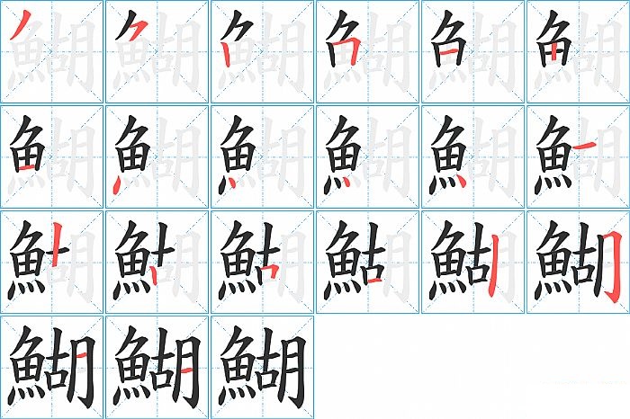 鰗是左右结构,鰗的部首是“魚”,部外笔画9画,总笔画20画,鰗的笔画顺序是“撇、横撇/横钩、竖、横折、横、竖、横、点、点、点、点、横、竖、竖、横折、横、撇、横折钩、横、横”。看看“鰗”字什么意思 >>