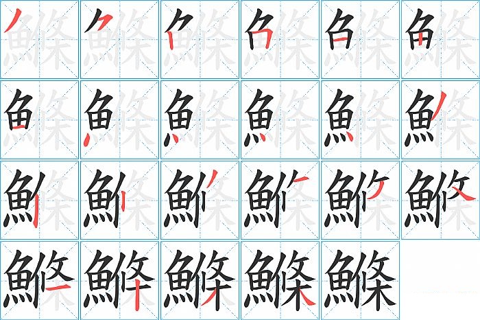 鰷是左右结构,鰷的部首是“魚”,部外笔画10画,总笔画21画,鰷的笔画顺序是“撇、横撇/横钩、竖、横折、横、竖、横、点、点、点、点、撇、竖、竖、撇、横撇/横钩、捺、横、竖钩、撇、点”。看看“鰷”字什么意思 >>