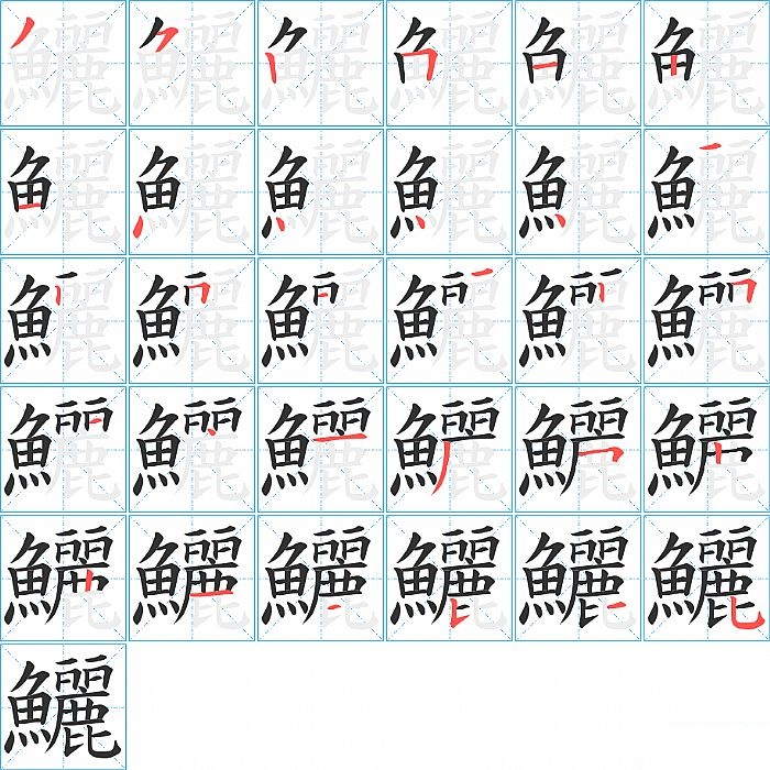 鱺是左右结构,鱺的部首是“魚”,部外笔画19画,总笔画30画,鱺的笔画顺序是“撇、横撇/横钩、竖、横折、横、竖、横、点、点、点、点、横、竖、横折、点、横、竖、横折、点、点、横、撇、横折、竖、竖、横、横、竖提、撇、竖弯钩”。看看“鱺”字什么意思 >>