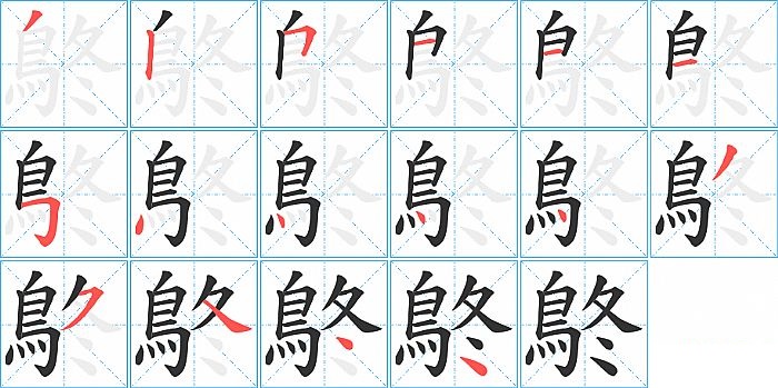 鴤是左右结构,鴤的部首是“鳥”,部外笔画5画,总笔画16画,鴤的笔画顺序是“撇、竖、横折、横、横、横、横折钩、点、点、点、点、撇、横撇/横钩、捺、点、点”。看看“鴤”字什么意思 >>