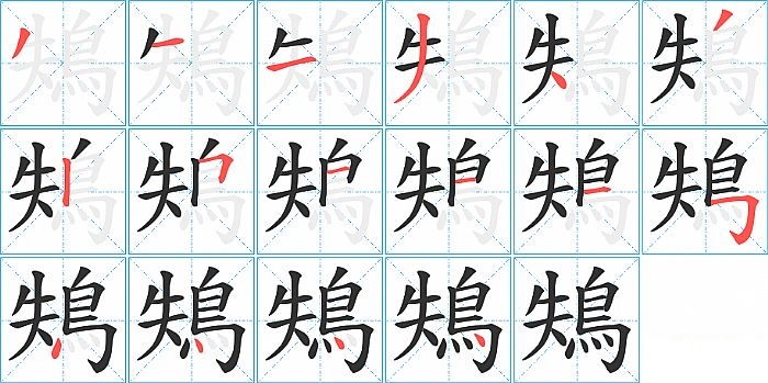 鴩是左右结构,鴩的部首是“鳥”,部外笔画5画,总笔画16画,鴩的笔画顺序是“撇、横、横、撇、点、撇、竖、横折、横、横、横、横折钩、点、点、点、点”。看看“鴩”字什么意思 >>