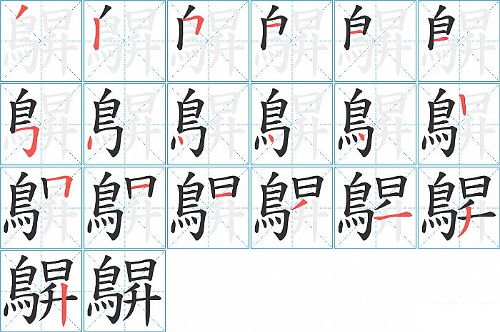 鵿是左右结构,鵿的部首是“鳥”,部外笔画8画,总笔画19画,鵿的笔画顺序是“撇、竖、横折、横、横、横、横折钩、点、点、点、点、竖、横折、横、横、撇、横、撇、竖”。看看“鵿”字什么意思 >>