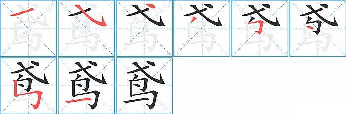 《鸢》字的笔顺分步演示图(一笔一画写汉字)