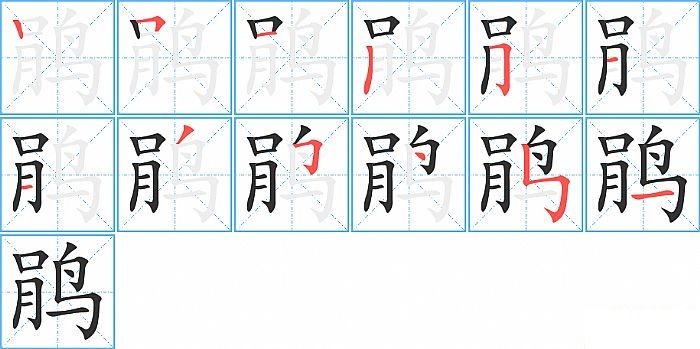 鹃是左右结构,鹃的部首是“鸟”,部外笔画7画,总笔画12画,鹃的笔画顺序是“竖、横折、横、竖、横折钩、横、横、撇、横折钩、点、竖折折钩、横”。看看“鹃”字什么意思 >>