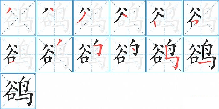 鹆是左右结构,鹆的部首是“鸟”,部外笔画7画,总笔画12画,鹆的笔画顺序是“撇、点、撇、点、竖、横折、横、撇、横折钩、点、竖折折钩、横”。看看“鹆”字什么意思 >>