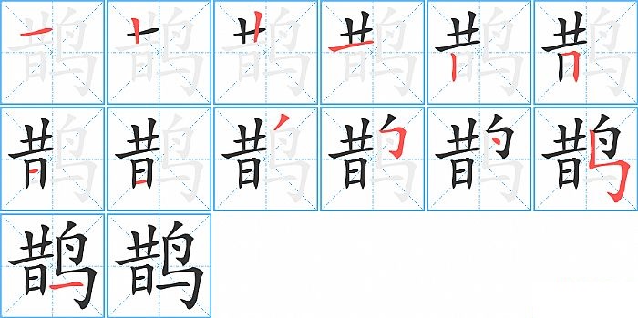 鹊是左右结构,鹊的部首是“鸟”,部外笔画8画,总笔画13画,鹊的笔画顺序是“横、竖、竖、横、竖、横折、横、横、撇、横折钩、点、竖折折钩、横”。看看“鹊”字什么意思 >>