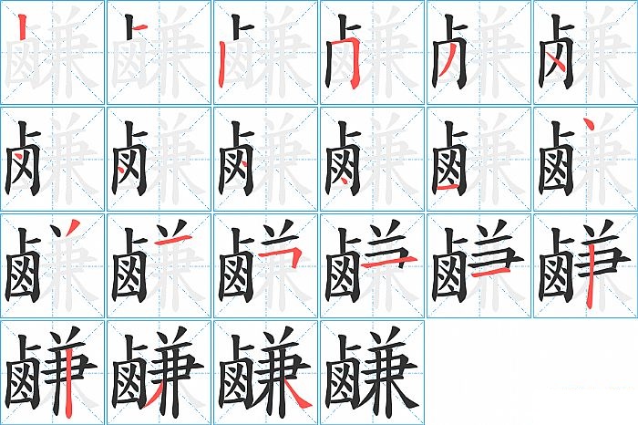 鹻是左右结构,鹻的部首是“鹵”,部外笔画10画,总笔画21画,鹻的笔画顺序是“竖、横、竖、横折、撇、点、点、点、点、点、横、点、撇、横、横折、横、横、竖、竖、撇、捺”。看看“鹻”字什么意思 >>