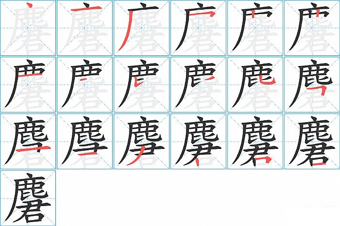 麏是左上包围结构,麏的部首是“鹿”,部外笔画7画,总笔画18画,麏的笔画顺序是“点、横、撇、横折、竖、竖、横、横、竖提、撇、竖弯钩、横折、横、横、撇、竖、横折、横”。看看“麏”字什么意思 >>
