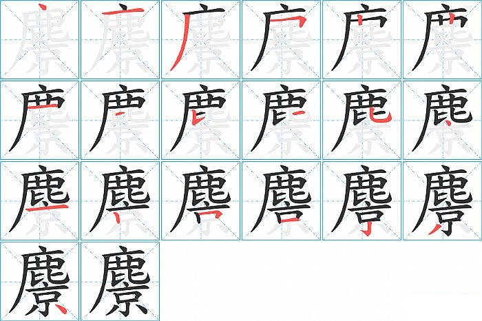 麖是左上包围结构,麖的部首是“鹿”,部外笔画8画,总笔画19画,麖的笔画顺序是“点、横、撇、横折、竖、竖、横、横、竖提、撇、竖弯钩、点、横、竖、横折、横、竖钩、撇、点”。看看“麖”字什么意思 >>