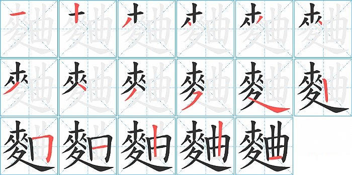 麯是左右结构,麯的部首是“麥”,部外笔画6画,总笔画17画,麯的笔画顺序是“横、竖、撇、点、撇、点、撇、点、撇、横撇/横钩、点、竖、横折、横、竖、竖、横”。看看“麯”字什么意思 >>