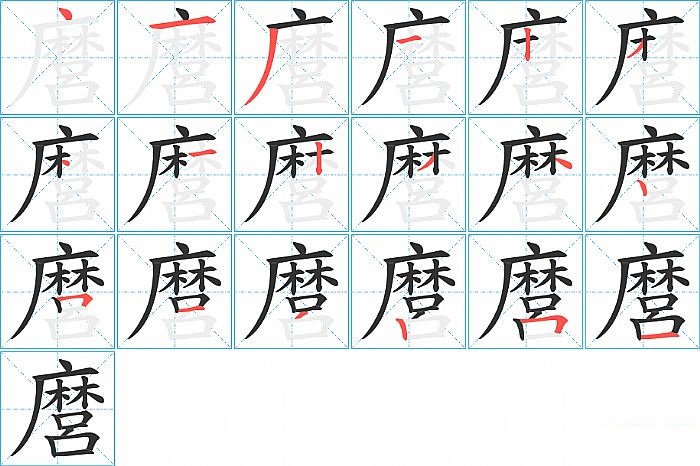 麿是左上包围结构,麿的部首是“麻”,部外笔画6画,总笔画17画,麿的笔画顺序是“点、横、撇、横、竖、撇、点、横、竖、撇、捺、竖、横折、横、竖、横折、横”。看看“麿”字什么意思 >>