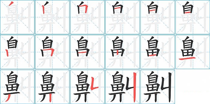 鼼是左右结构,鼼的部首是“鼻”,部外笔画2画,总笔画16画,鼼的笔画顺序是“撇、竖、横折、横、横、横、竖、横折、横、竖、横、横、撇、竖、竖提、竖”。看看“鼼”字什么意思 >>